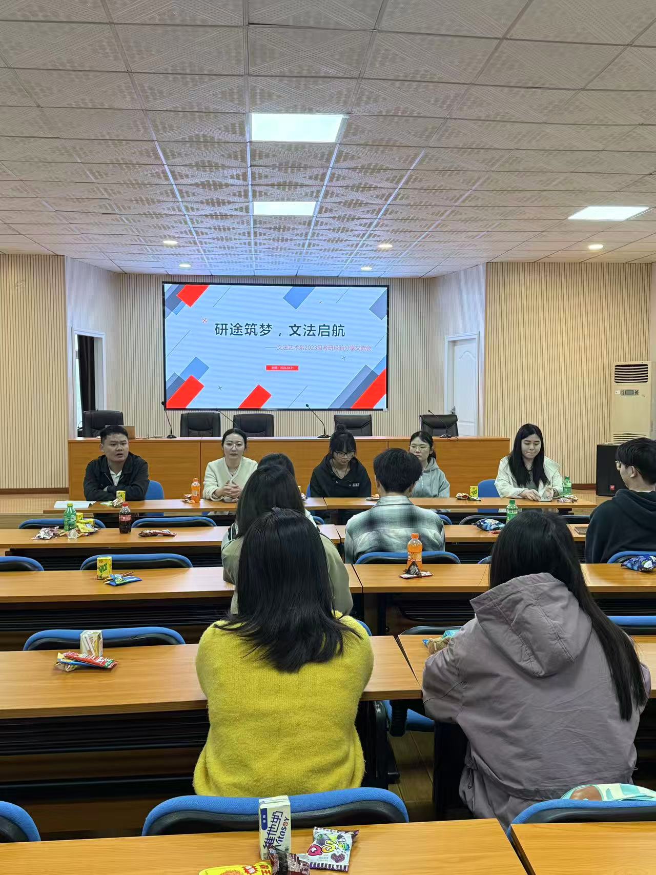 4月21日下午,城南学院文法艺术系“研途筑梦,文法启航”2023级考研经验交流会在二教201召开。会议由辅导员谭怀芝主持,特邀环艺专业考研成功学子与考研指导池老师现场分享,为2023级考研学子答疑解惑、指明方向。