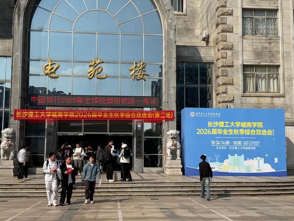 10月24日下午,长沙理工大学城南学院2026届毕业生秋季综合双选会(第二场)在金盆岭校区电苑楼顺利举行。作为学院就业工作的重要环节,本场双选会以“精准对接、提质增效”为核心,吸引70余家知名企业参会,提供近800个岗位,覆盖机械、电力、智能制造、新能源、数字经济、文化创意及建筑等多个领域,岗位类型涵盖技术研发、项目管理、运营策划等,充分匹配毕业生多元化需求。