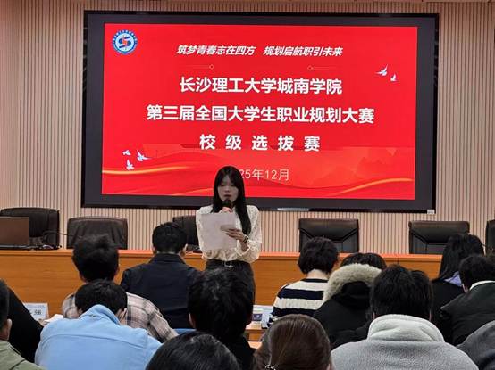 冬日渐深,初寒乍暖,而长沙理工大学城南学院2教201报告厅内却暖意融融、氛围热烈。12月9日,城南学院第三届全国大学生职业规划校级选拔赛在此正式开赛,来自各系的优秀学子齐聚一堂,以清晰的职业蓝图、饱满的青春热忱,展开了一场关于未来的精彩角逐。