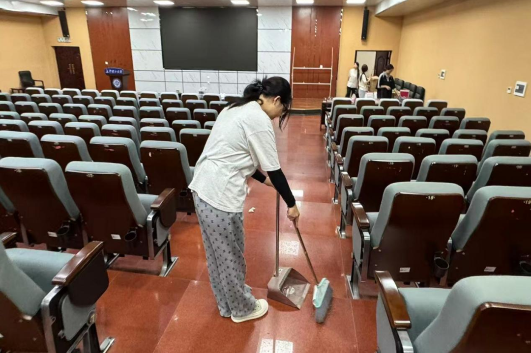 为给2025级新生打造整洁舒适的入学环境,法学院师生提前开展全方位清洁整理工作。大家分工协作,不仅对新生宿舍进行全面清洁消杀,还对法律援助中心的咨询接待区、文件收纳区,以及四教法学院报告厅的座椅、讲台、地面等进行彻底清扫与整理,确保各场所干净整洁。