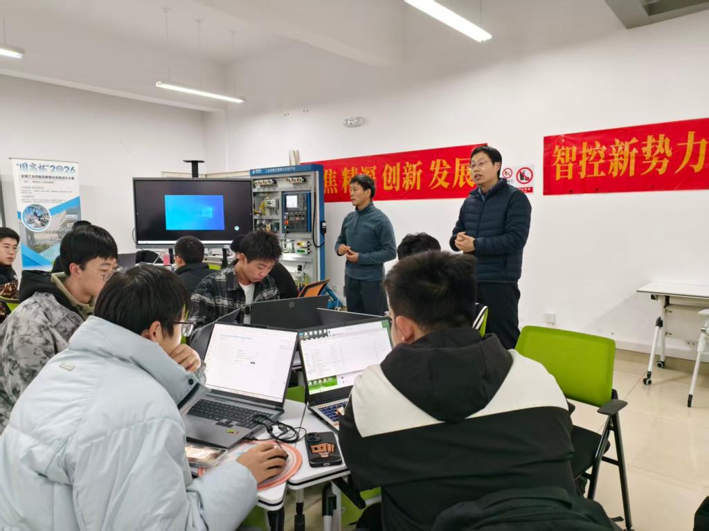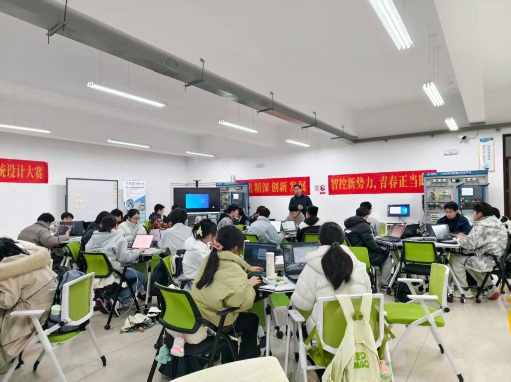 培训课程体系设计兼具专业性与实操性,紧扣工业控制及数智化核心技术方向,涵盖伺服驱动技术与调试、控制器调试技术、网络通讯技术、视觉系统图像采集等核心模块,以及低代码开发及总控、机器人技术与编程、数控技术与加工编程等低代码总控相关内容,所有课程均采用“理论讲解+实操训练”的模式开展,精准对接大赛赛题要求与核心技术考核方向。此次赛前培训与校赛考核紧密衔接,既为参赛学子搭建了系统的技术学习与实操练习平台,帮助学子夯实专业基础、提升实操应用能力,也通过以赛促学、以赛选才的方式,为后续赛事选拔优质参赛队伍。