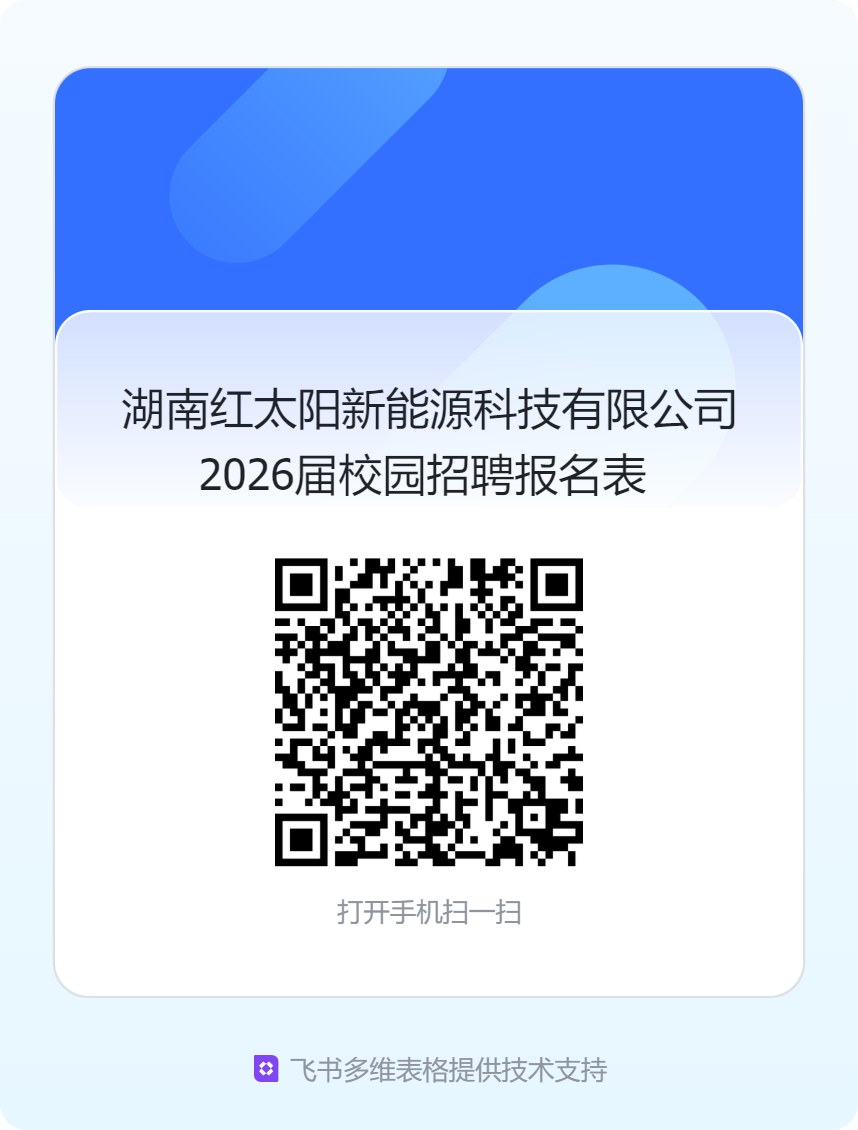 湖南红太阳新能源科技有限公司是中国电子科技集团有限公司第四十八研究所(1964年成立的长沙半导体工艺设备研究所)孵化的国有科技型骨干企业,依托母所六十载半导体技术与光伏工艺研发积淀,先后获评全球光伏20强、国家计划重点高新技术企业、工信部智能光伏试点示范企业,构建覆盖高效光伏产品研发制造、清洁能源解决方案、全生命周期技术服务的"1+3+N"业务体系,产品与服务遍及全球50余国,累计交付光伏产品超30GW、智能产线50GW、电站5GW,在土耳其、印度等地建成多个整线技术输出标杆项目。依托国家级科研平台,公司持续推动光伏技术创新,致力于为全球能源结构转型提供低碳高效的“中国方案”。