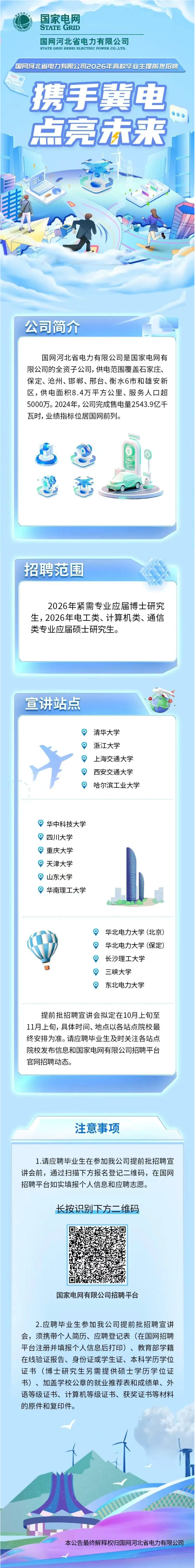 国网河北省电力公司 是隶属于国家电网公司的国有大型骨干企业,负责河北南部电网的规划、建设、调度和运营,区域包括石家庄、保定、沧州、衡水、邢台、邯郸六市及其下辖的89个县(市),其中辛集、宁晋、魏县、景县、任丘、涿州、定州等7个县(市)为省直管县,供电面积8.4万平方公里,服务人口5053万。具有基础产业和公用事业的双重属性,担负着重要的政治责任、社会责任和经济责任。