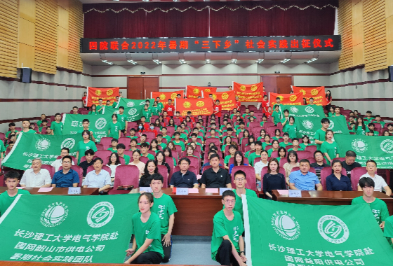7月4日下午,四院联合2022年暑期“三下乡”社会实践出征仪式在云塘校区图书馆报告厅顺利举办。长沙理工大学党委委员、副校长钱国平,学生工作部副部长闾兰,教务处副处长李平,校团委副书记陈璐莎,学校关工委主任王乃厚,电气、经管、国际、城南四个学院的领导老师以及各实践队带队指导老师出席,171名实践队员参加,仪式由电卓2001班冯悦航主持。