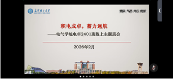 为总结过去、规划未来,进一步凝聚班级力量,明确发展方向,电气学院电卓2401班于2月4日晚开展“积电成卓,蓄力远航”新学期线上主题班会。班会围绕学业总结、生涯引导与班级共建三个方面展开,班主任丁丹老师、辅导员杨宸君老师全程参与指导,班级全体同学参加。