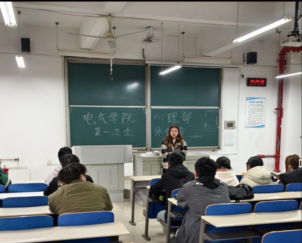 3月5日下午,电气与信息工程学院心理部第一次全体例会在工一B211召开,本次会议由学院心理辅导员吴佳骐指导,心理部部长杨润声主持,心理部全体成员参加。
