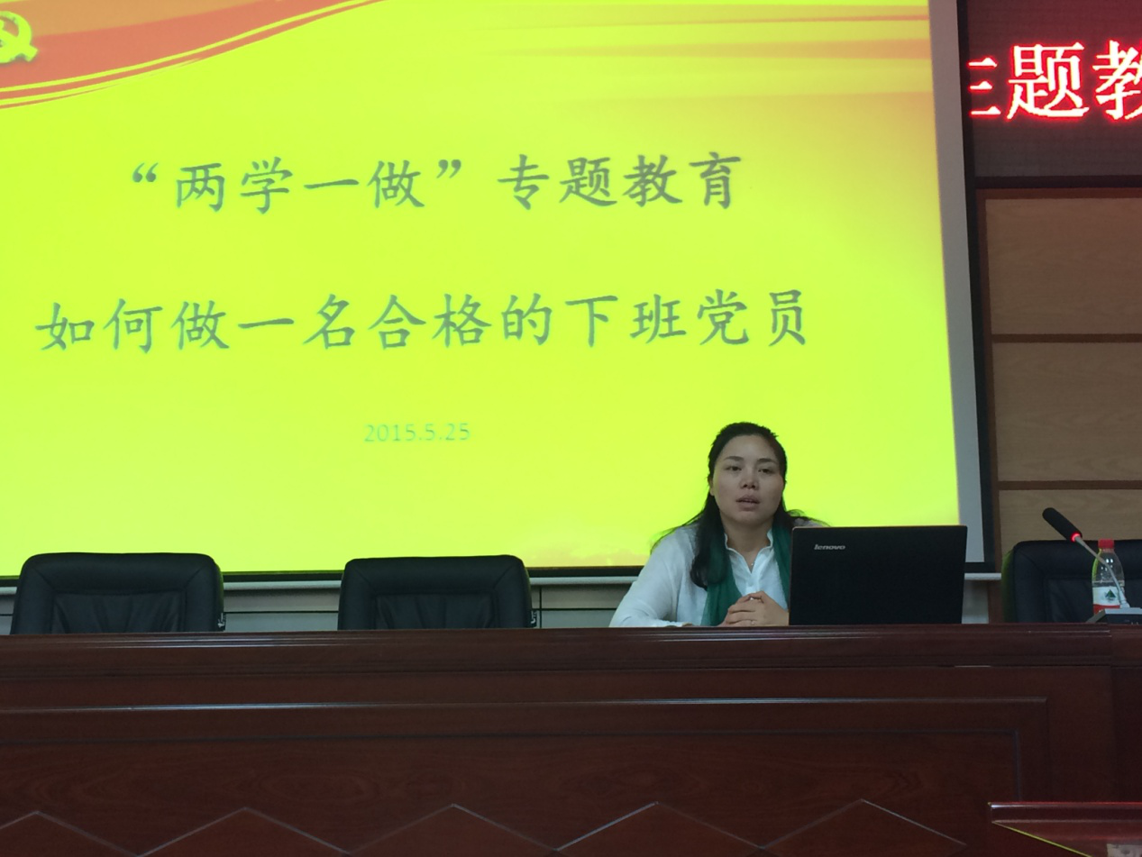 邵巧艳结合校、院“两学一做”学习教育工作要求,指出在校大学生群体中做一名合格党员的意义,强调了做一名合格下班党员的重要性。她结合下班党员的责任和义务,要求下班党员在自己学好党章党纪的基础上,将我党严明的纪律内化于心,把所下班级积极分子党章理论学习落到实处;同时深刻理解党要管党、从严治党的含义,提升自己的管理水平,做到与时俱进;强调以知促行的意义,希望大家能够将“将政治、有信念、讲规矩、有纪律、讲道德、有品行、讲奉献、有作为”外化于形,成为一名合格的下班党员。