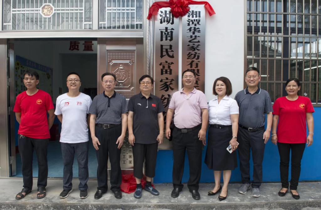下午,曹一家一行来到易地扶贫搬迁安置点,参加“‘喜迎新居颂党恩、共建美好新家园’长沙理工大学走进新宁县水庙镇枧杆山村易地扶贫搬迁安置点送温暖”活动。曹一家代表学校致辞,他鼓励村民抢抓机遇,在政府和扶贫工作队的帮助下发挥主观能动性,通过努力奋斗尽快摆脱贫困。曹一家一行向贫困户送去了大米和食用油等物资,并登门入户走访了入住新居的贫困户,与村民群众进行亲切交流,细致深入地了解了村民的住房条件、收入水平、健康状况,并叮嘱扶贫队工作人员要继续关注困难群众,尽全力帮助他们解决生活难题。随后,曹一家、县领导李荣卫、林清华及湘潭华艺家纺有限责任公司负责人许利华一同为扶贫车间揭牌。
