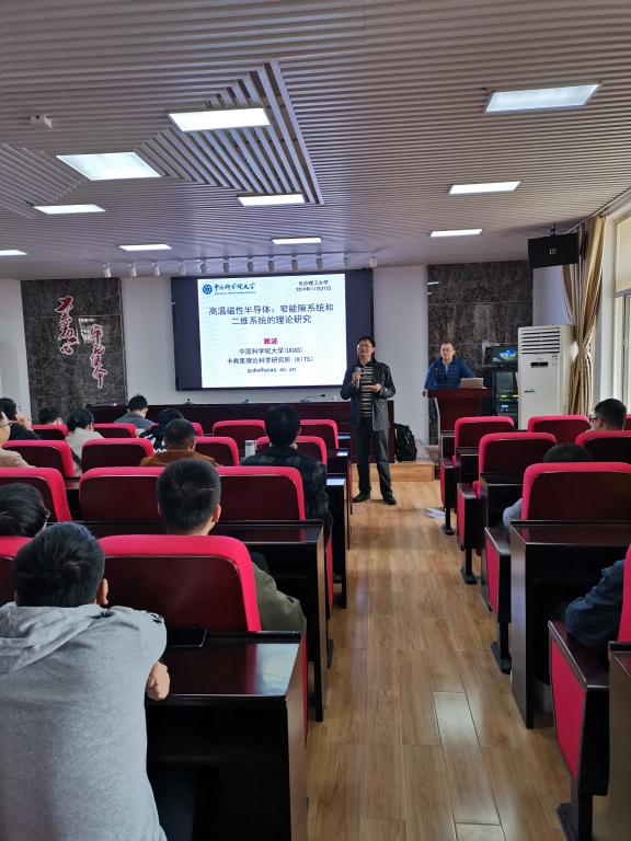 2019年11月21日上午10点,应我院邀请,中国科学院大学顾波副教授我院师生做了一场主题为“高温磁性半导体:窄能隙系统和二维系统的理论研究”的学术报告报告会由丁开和院长主持,部分老师、本科生和全体研究生参加了此次讲座。