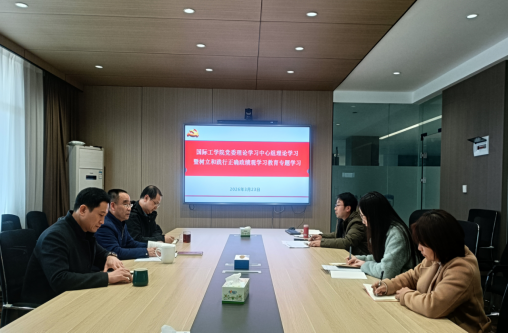 3月23日下午,国际工学院党委理论学习中心组召开专题学习会,深入学习《习近平关于树立和践行正确政绩观论述摘编》一二三章、习近平总书记在二十届中央纪委五次全会上的重要讲话精神,以及《习近平:让愿担当、敢担当、善担当蔚然成风》重要文章。学院党委书记黄自力主持会议并讲话,班子成员参加学习,两位院领导作中心发言。