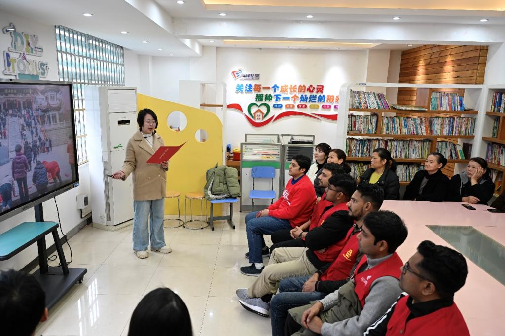 活动伊始,㮾梨街道“㮾读者”黄澳格作了题为《保护文化遗产,传承㮾梨文脉》的主题宣讲。他从地理区位与历史沿革入手,深入剖析了㮾梨非遗文化的起源、发展脉络及其当代价值,为在场师生与社区居民上了一堂生动的文化溯源课。来自孟加拉的留学生美玲表示,㮾梨的非遗故事极具感染力,她希望能将这些动人的中国故事分享给更多国际友人。