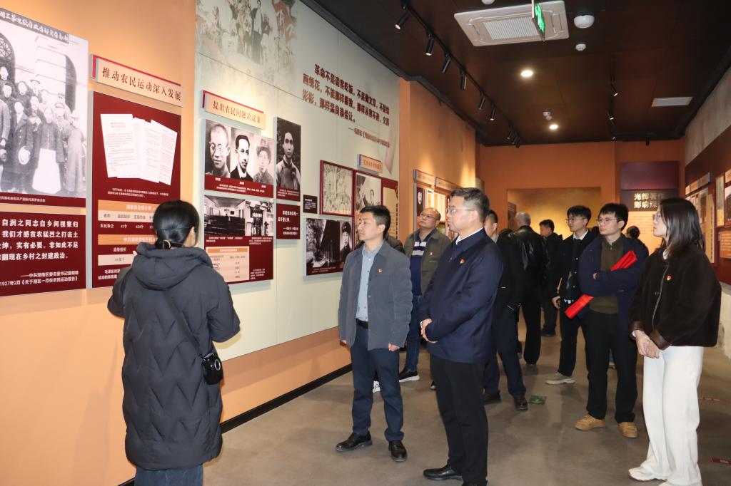 动员仪式后,全体人员沿S325步行约2公里进行现场调研,实地勘察路况、深入了解该路段养护需求,将学习课堂移到养护一线,在行走中检视问题,在交流中探讨方案。走进古朴的银田河街,驻足承载岁月痕迹的张公桥遗址和见证昔日商贸繁荣的“长庆和”米行旧址,触摸着这片土地的厚重过往,深刻感受着革命历史与人民生活的血脉相连。带着对历史的敬意与思考,走进毛泽东考察湖南农民运动历史陈列馆“调查研究的缘起”“实地考察湖南农运”“光辉著作影响深远”及“没有调查就没有发言权”4个展厅,通过实物、图文与影像等丰富的史料,感受着毛泽东同志深入农村调查研究、领导农民运动的伟大实践,深刻体会到“没有调查,没有发言权”的真理力量,进一步感悟党同人民群众的血肉联系。