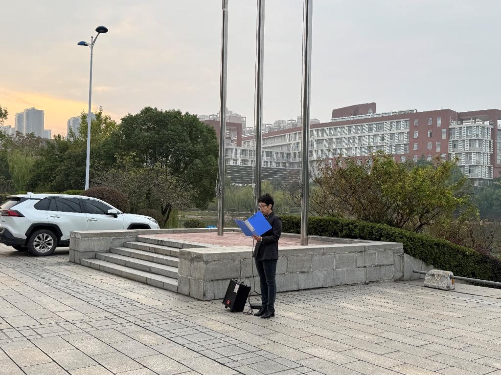 随后,李娟作国旗下讲话。她指出,在国旗下相聚本身就是一堂生动的爱国主义教育课,并勉励2025级新生心怀“国之大者”,将个人理想融入“数字中国”“智慧城市”的建设蓝图,以测绘人的实干精神、遥感人的创新品格、地信人的服务担当,积极践行“精准感知、智慧服务”的专业使命。