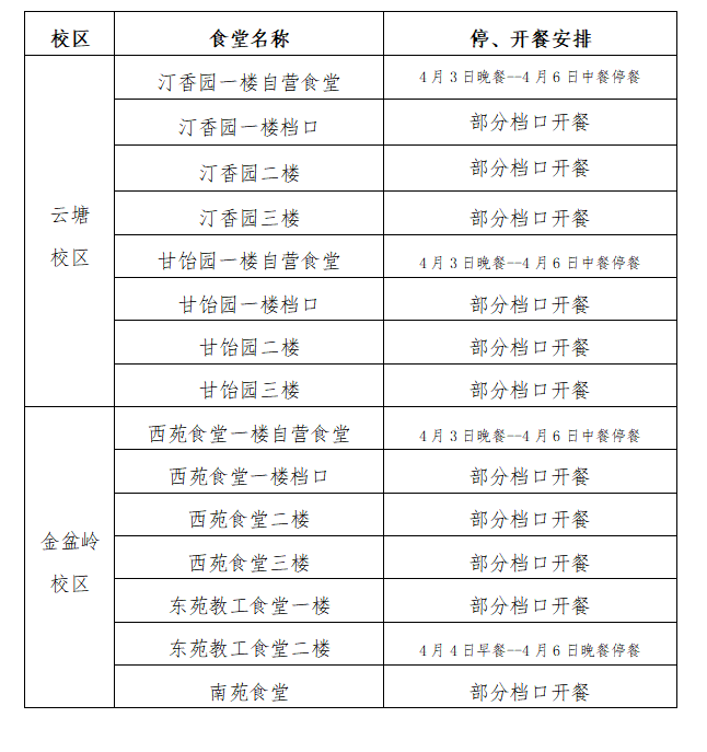 关于清明节食堂停、开餐的通知