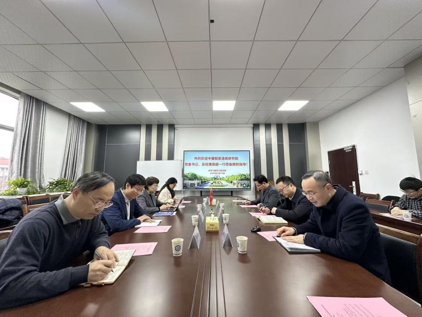 2026年3月19日,中国制浆造纸研究院党委书记、总经理田超,全国造纸工业信息中心主任刘振华,首席专家、包装材料中心主任张红杰,造纸工业生产力促进中心副主任李政一行4人,莅临化学与医药工程学院交流指导,学院党委书记宋刘斌、副院长陈启杰、轻化系党支部书记王玉珑及轻化系青年骨干参加交流会。