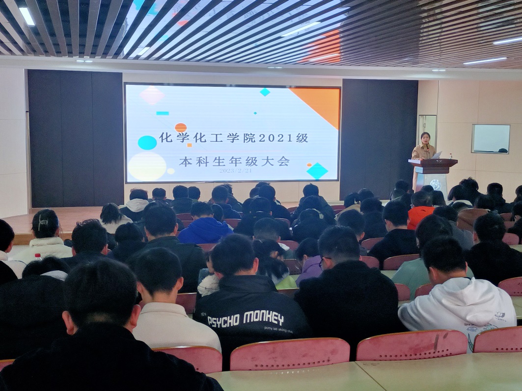 2月21日16点,化学化工学院在工三A307召开2021级本科生新学期第一次年级大会,会议围绕“复习备考、学风建设、寝室建设、沟通机制、加强意识、调节心态、提升本领及安全稳定”等八个方面开展。21级全体学生参加,会议由年级辅导员孙佳乐主持。