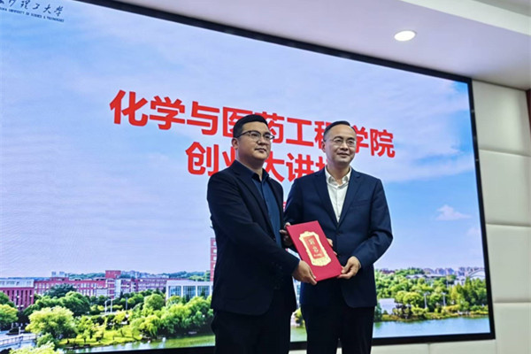 4月14日下午,长沙理工大学化学与医药工程学院在云塘校区工科三号楼B319学术报告厅举办创业主题讲座暨“70年·70人”校友故事会,邀请2012届轻化工程专业校友何方重返母校。活动现场,副院长陈启杰教授为何方颁发“创新创业导师”聘书,学院近百名学生到场聆听。