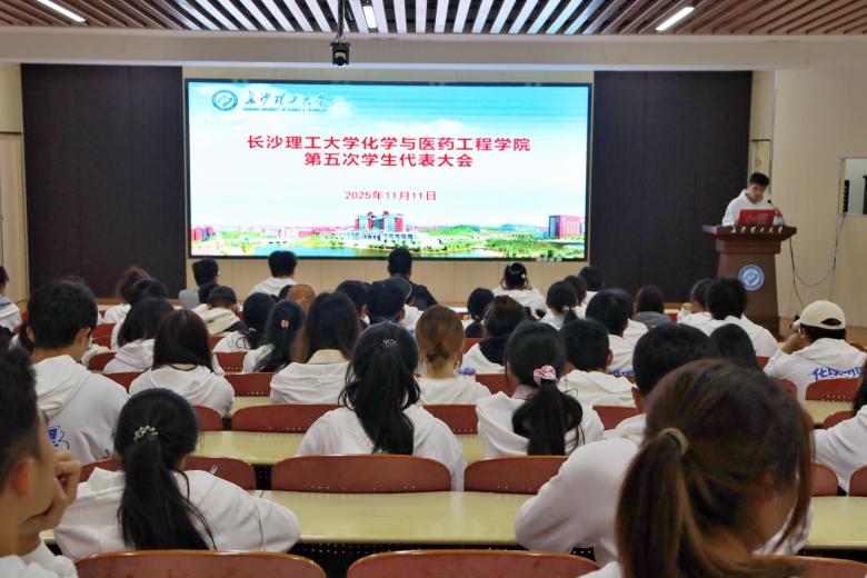 2025年11月11日,长沙理工大学化学与医药工程学院第五次学生代表大会在云塘校区工科三号楼A201报告厅隆重召开。学院党委副书记李家春应邀出席大会,来自学院各年级的129名学生代表齐聚一堂,共商学院学生会发展大计。