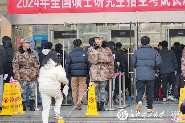 冬日寒风中,不少考生在排队时仍捧着资料抓紧复习,考务工作人员和志愿者则在一旁耐心提醒他们相关注意事项。今年,长沙理工大学考点共有考生3938名,按照统一要求,学校在各考场配备了智能安检门,确保全方位、无死角检测,保障考试公平公正。为了避免考生长时间等待,学校精心设计了安检排队组织方案,采取多级安检制度,提高过检效率。