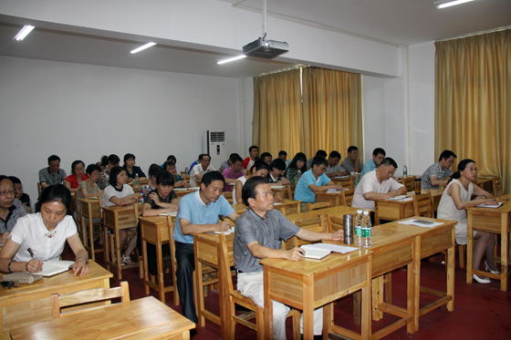 7月12日下午,副校长谈传生在金盆岭校区15教402教室,为继教学院教工党员讲授“两学一做”学习教育专题党课。校党委委员、继教学院党委书记付嫦娥主持党课活动。