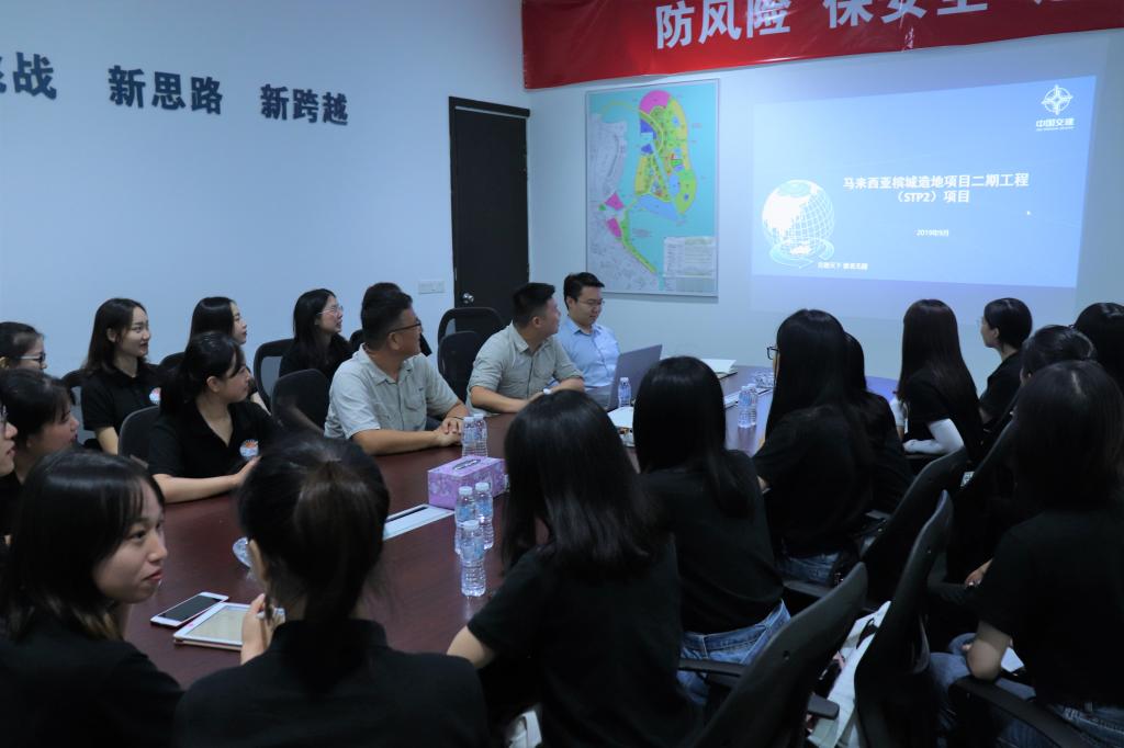中国交通建设(马)有限公司STP2工程项目经理部位于马来西亚西北部的槟岛上,通过两座跨海大桥与大陆相连,距马来西亚首都吉隆坡约350g公里,工程总造价为23.2亿马币。长沙理工大学财经系校友、项目财务总监关维勤热烈欢迎经管学子们的到来,项目部陆洋为同学们从护岸工程、吹填工程、地基处理工程、疏浚工程和钢筋混凝土工程等5个方面详细介绍了马来西亚槟城吹填项目二期的具体情况。接着,他为大家播放了填海船只运作、项目建造、中国交通建设公司介绍的视频,使同学们对中国交建企业文化、此项目建设的意义、项目实施的难点以及项目设计的特点等有了更加深入的了解。关维勤称赞长沙理工大学经济与管理学院作为全国交通、电力、水利行业财务总监和总会计师的摇篮基地,为企事业单位培养了大批高层次管理人员,同时欢迎经管优秀研究生加入中国交建海外项目部,在“一带一路”倡议沿线再创辉煌。
