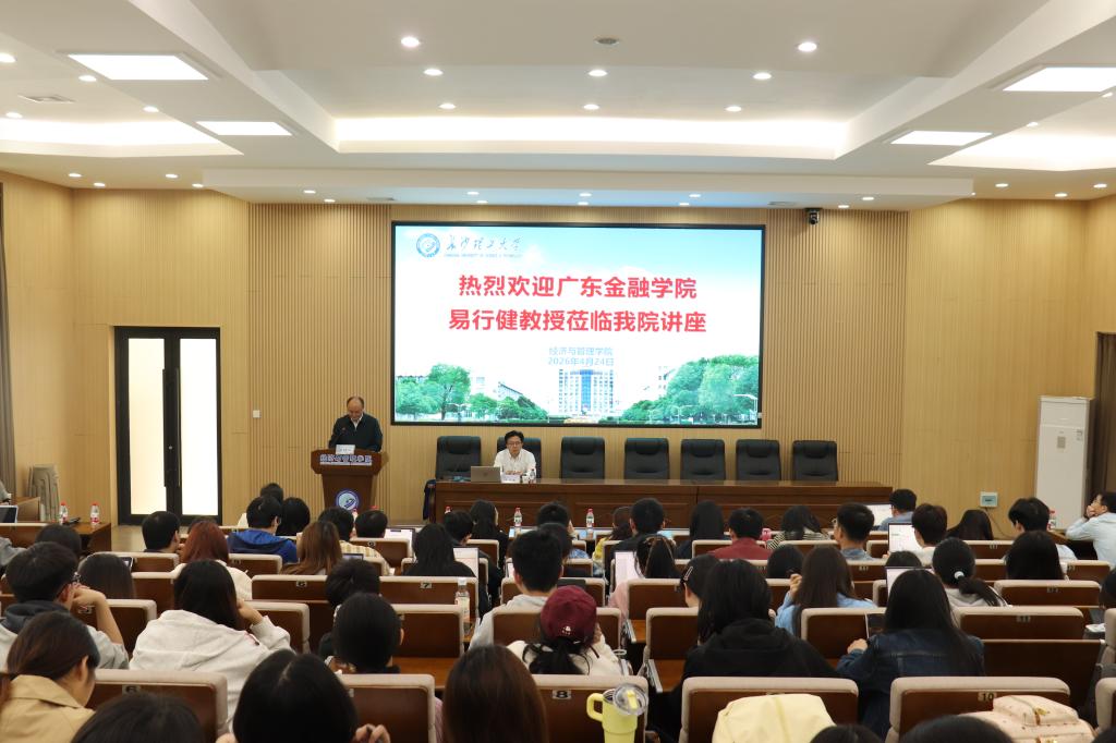 2026年4月24日下午,广东金融学院校长易行健教授应邀在交通大楼100报告厅主讲金岭学术大讲堂第90期(2026年第6期),主讲题目为“中国居民消费不足与新发展格局下的消费潜力释放”。学院青年教师及硕士、博士研究生共120余人参加了本次讲座。讲座由院长彭新宇主持。