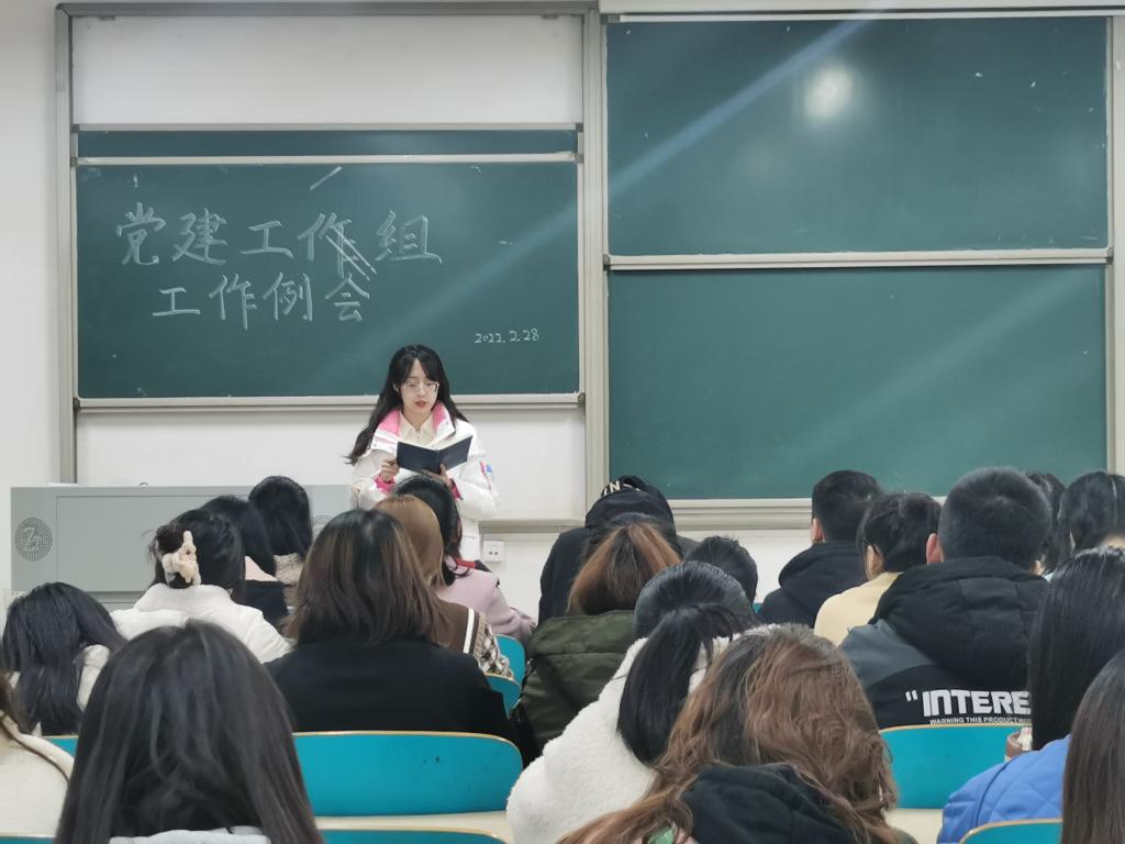 2月28日晚,经管学院本科生党建工作组新学期第一次例会在文科楼E102召开。党建辅导员叶鑫和全体学生干部参与此次会议。