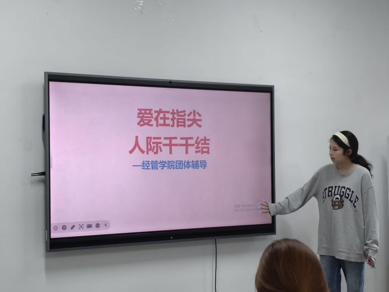 4月28日下午,经管学院于交通大楼101举办“爱在指尖,人际千千结”心理团体辅导活动。大一、大二40名学生代表参加活动,活动由朋辈心理部胡楷祺主持。