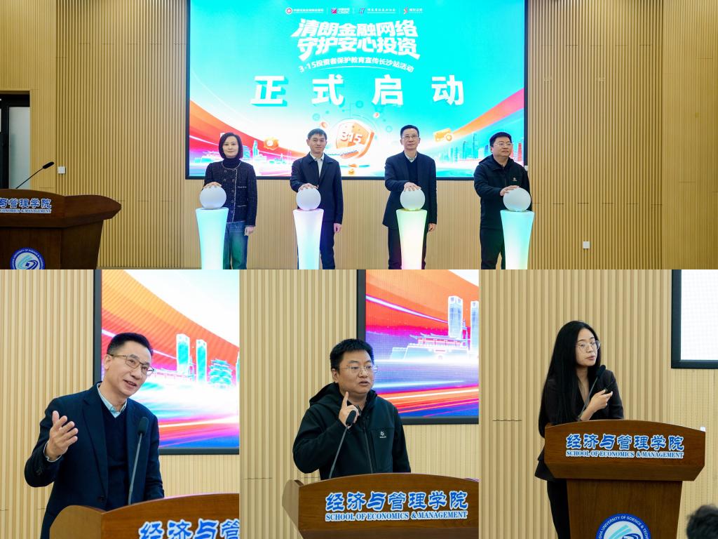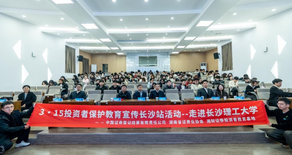 2026年3月17日,在湖南证监局的指导下,由中国证券登记结算有限责任公司、湖南省证券业协会、湘财证券投资者教育基地联合主办,长沙理工大学经济与管理学院承办的2026年“3·15”投资者保护教育宣传专项活动长沙站首场讲座顺利举行。本次活动以“清朗金融网络,守护安心投资”为主题,旨在为青年学子打通理论与实践的壁垒,提升风险防范意识。活动由尹筑嘉副院长主持,学院120余名师生参加。