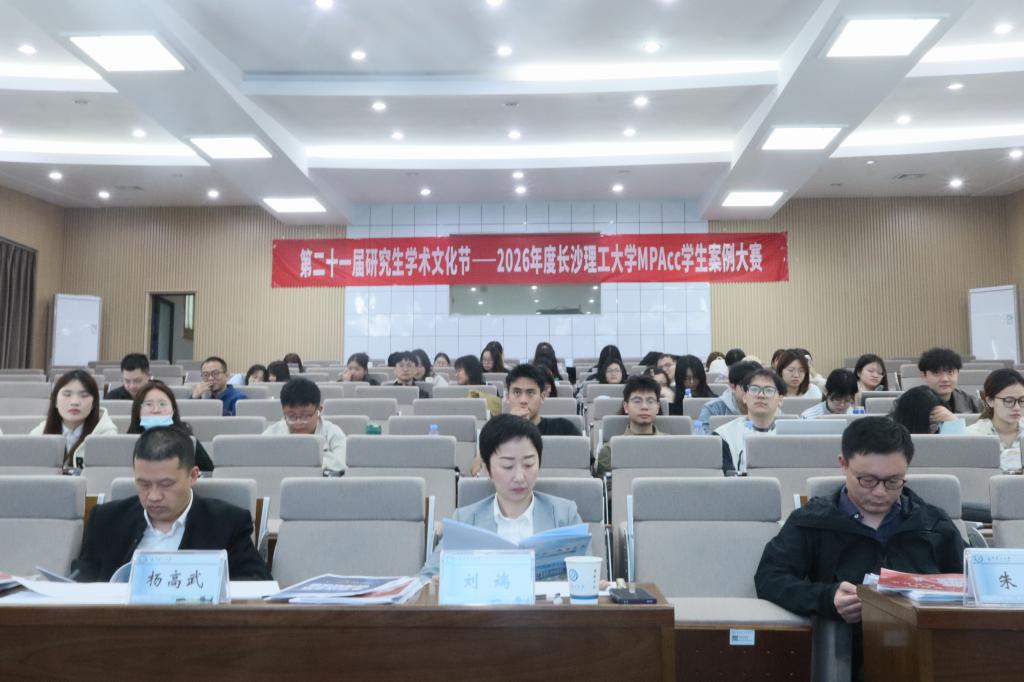 为深化MPAcc专业实践教学改革,提升会计专硕学子的专业素养与实践创新能力,2026年4月12日8:00-12:00、14:00-18:00,第二十一届长沙理工大学研究生学术文化节MPAcc学生案例大赛在经管大楼100报告厅顺利举办。本次大赛以《炼数成金,南钢股份数据资产入表》为主题,聚焦数字经济时代下数据资产入表的热点与难点,吸引了全校13支队伍同台竞技。本次大赛特邀湖南大学刘端教授、湖南路桥财务管理部杨高武副部长、长沙理工大学经济与管理学院财会系朱锐主任担任评委,大赛由院研究生会学术部张婷主持。