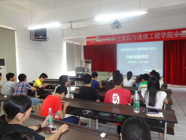 6月18日下午,在理科楼B311成功举办长沙理工大学第四届研究生“云影讲坛”计通学院分论坛。本次分论坛以“计算与图灵机”为主题。研究生辅导员肖苹宁老师及全体研究生参加,陈曦教授担任主讲。