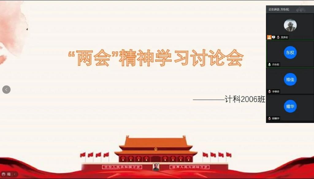 “两会”是我国的重要会议,作为新时代的中国大学生,要时刻关注国家大事,学习新思想,争做新青年。计通学子将进一步从会议精神中汲取智慧,认真学习党的路线方针政策,用党取得的伟大成就来激励自我,脚踏实地完成学习和科研任务,在广泛实践中丰富对党的认识,以青春力量奉献祖国发展。