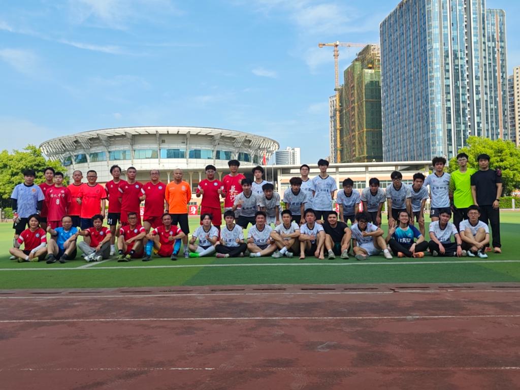 比赛结束后,师生队员相互击掌致意、并肩合影,现场氛围温暖融洽。此次友谊赛不仅让学生看到了教师课堂之外的别样风采,深化了师生间的理解与信任,更丰富了校园文体生活,推动了校园体育文化建设,进一步凝聚了师生奋进力量。