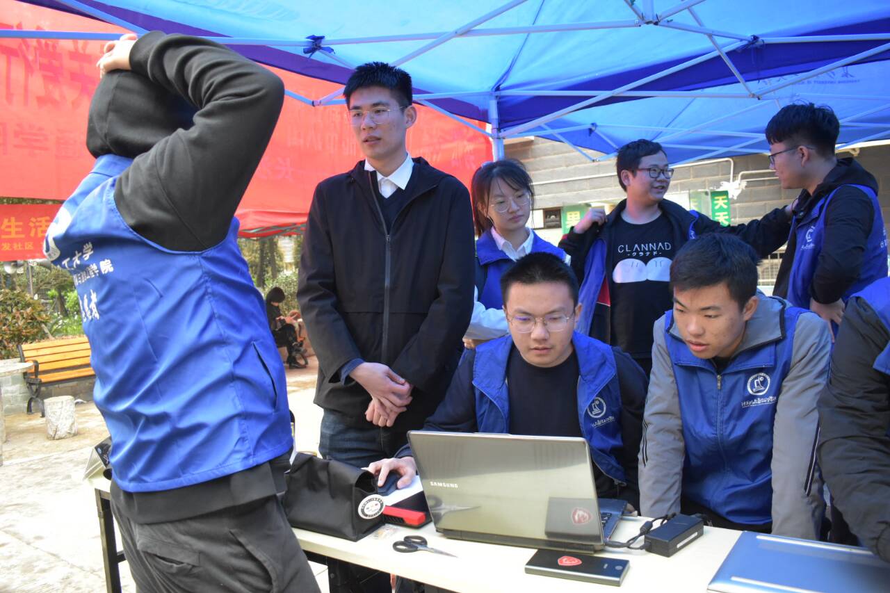 下午2点,在社区居民们的热情帮助下,很快搭建好了服务营地。虽然下起了小雨,志愿者们仍然风雨无阻进行帮扶行动。本次“勇松”IT志工数字智能帮扶团开设了居家生活区、绿色出行区、网络安全区以及义务维修区四个服务区,为过往社区居民普及网络安全知识、指导如何查询健康码、教授垃圾分类知识以及义务维修电子设备。此外,帮扶团还分出部分人员进行了上门服务,为居民们讲解手机软件的相关使用方法,维修电脑设备。在本次活动结束前志愿者们还进行了相关问卷调查,为下次社区志愿活动的开展做好准备。