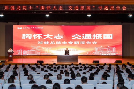 9月26日下午,郑健龙院士“胸怀大志 交通报国”专题报告会在金盆岭校区五教大礼堂举行。中国工程院院士、长沙理工大学交通学院教授郑健龙为2025级全体新生和新进教师讲授“开学第一课”。交通学院全体班子成员、全院千余名师生现场聆听。报告会由交通学院副院长(主持工作)吕松涛主持。