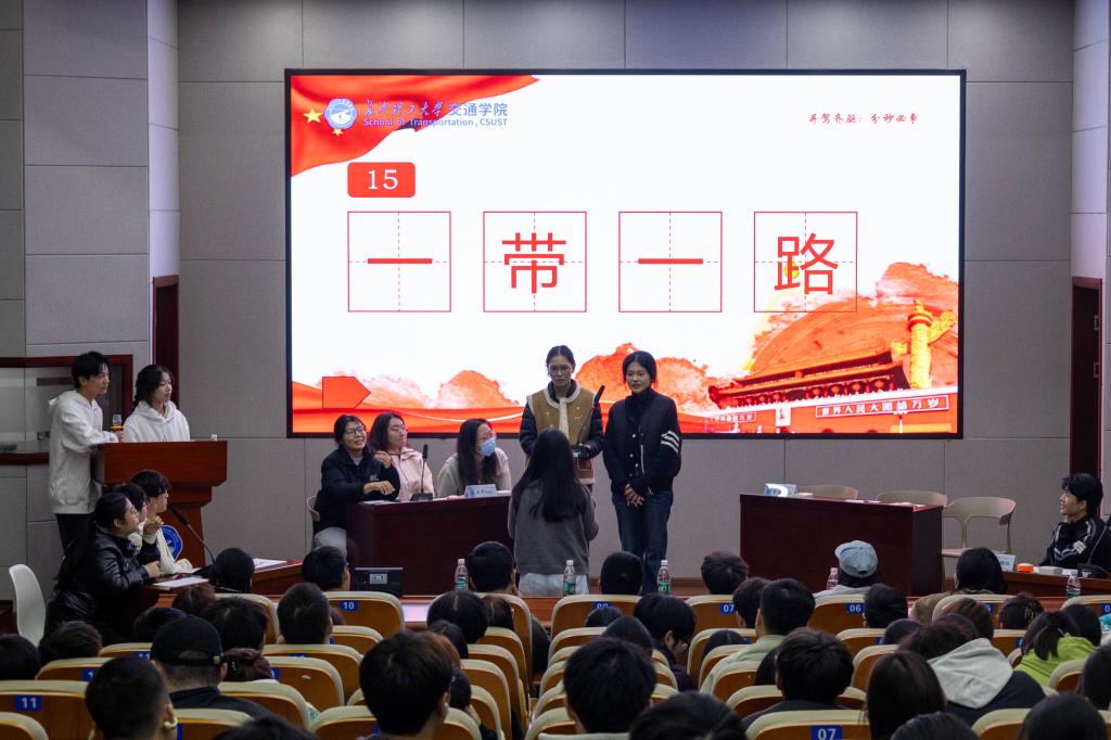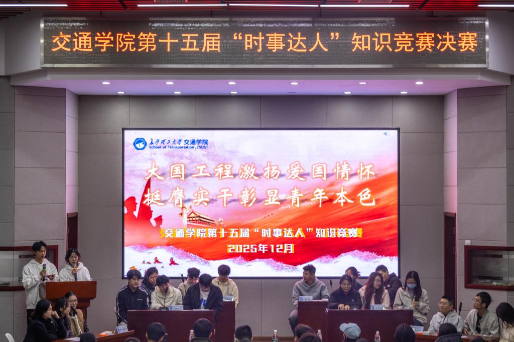 12月9日晚,长沙理工大学交通学院第十五届“时事达人”知识竞赛决赛在云塘工二B301报告厅落下帷幕。本次竞赛以“大国工程激扬爱国情怀,挺膺实干彰显青年本色”为主题,吸引百余名师生到场观赛,活动现场气氛热烈。