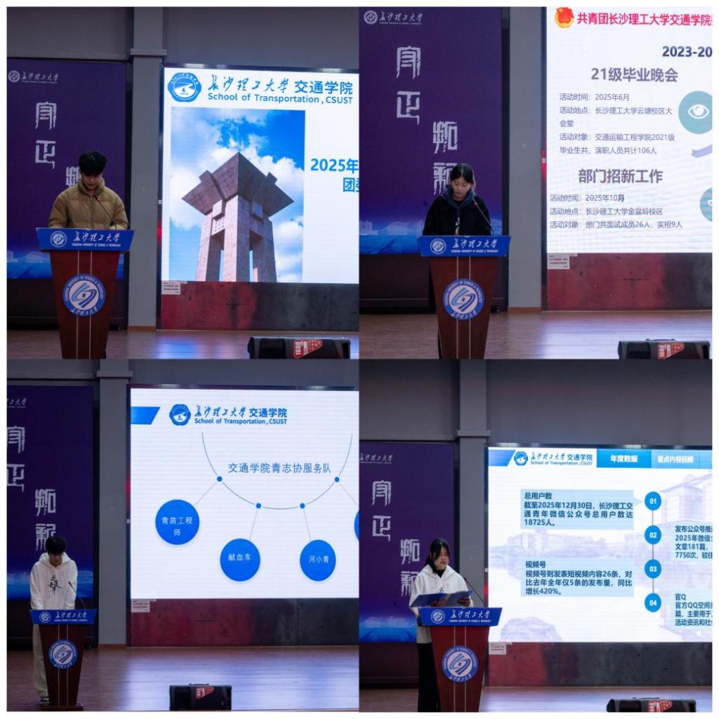 本次活动不仅对2025年的团学工作进行了全面回顾与总结,还明确了新一年的工作目标与努力方向,启动了新一期青年马克思主义者培训班征程。新的一年全体学生干部将接续奋斗,加强团结协作,以更为昂扬的精神状态投身于学习与工作之中,为学院的高质量发展以及交通强国建设贡献青春力量。