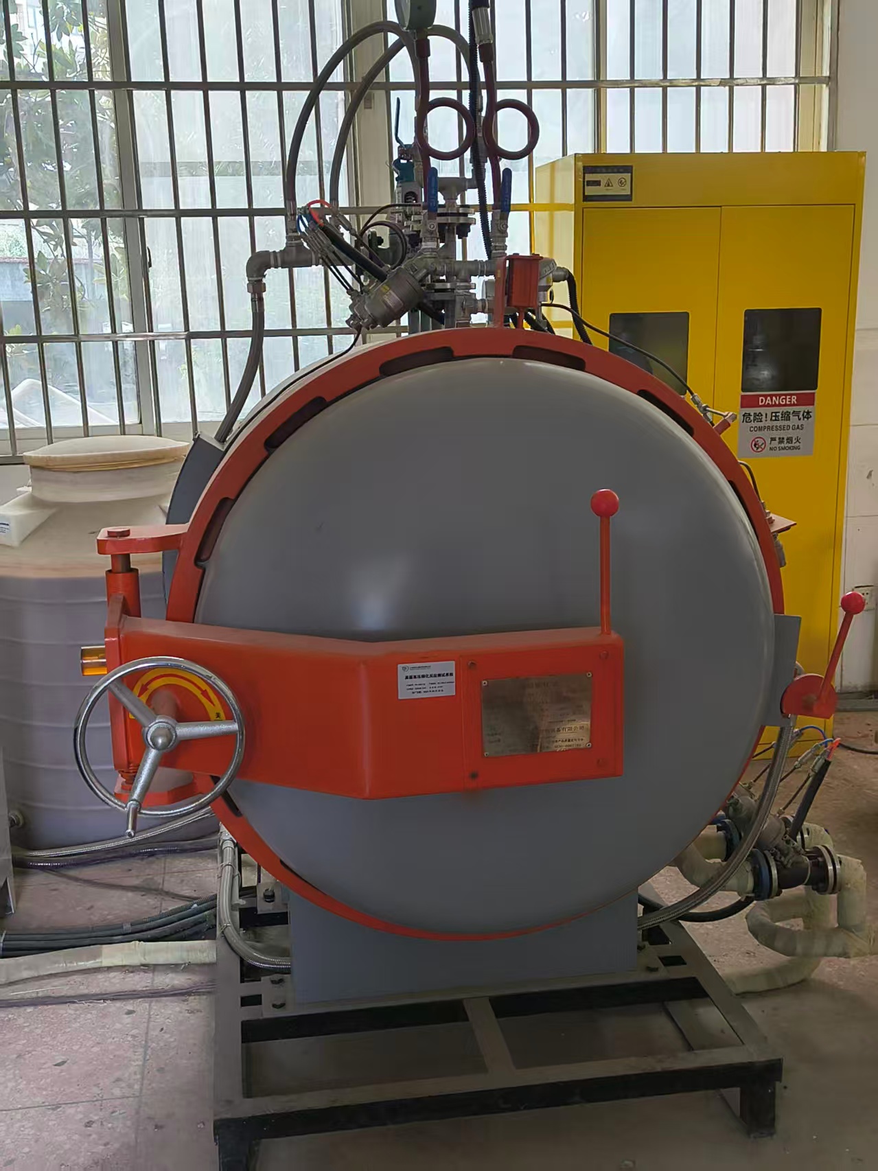 高温高压碳化反应釜是一种多功能压力处理设备,主要用于材料的高温碳化和蒸汽加压处理。该设备采用优质压力容器钢制造,设计压力1.58MPa,设计温度200℃,压力控制精度±0.02MPa,温度控制精度±2℃,二氧化碳浓度控制精度±2%,湿度控制精度±5% R.H;实际使用最大压力1.2MPa,温度190℃,相对湿度50~100%R.H,二氧化碳浓度0~100%。