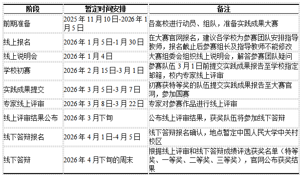 注:① 以上时间为暂定安排,如有调整将另行通知,请以最新公告为准。② 大赛官网请关注数字经济教指委官方网站。③ 其他未尽事宜,以本年度大赛规程或组委会补充说明为准。