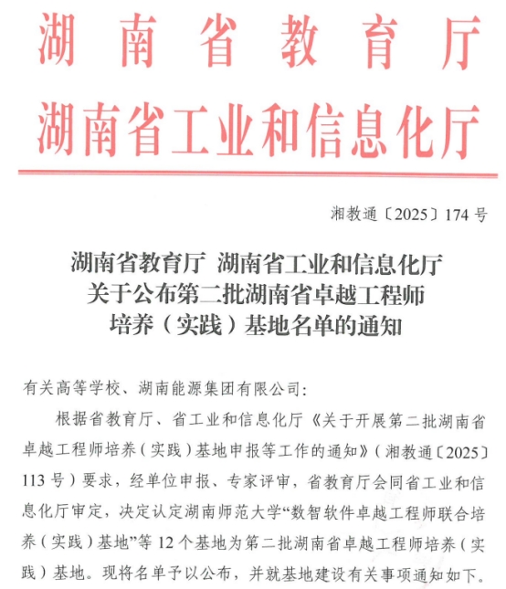 近日,湖南省教育厅、湖南省工业和信息化厅公布了湖南省第二批卓越工程师培养(实践)基地立项名单,由我校卓越工程师学院牵头,联合湖南星邦智能装备股份有限公司、湖南五新隧道智能装备股份有限公司共同申报的“长沙理工大学工程机械卓越工程师培养(实践)基地”获批立项。