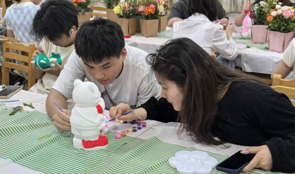活动以“沉浸式疗愈”为核心,创新融合手工创作与心理调适。在石膏彩绘环节,纯白娃娃化身“情绪画布”,参与者通过色彩与笔触赋予作品独特情感主题——或明快热烈,或沉静内敛,每一笔都是内心的真实映射。插花DIY则以自然为媒,参与者精选绿植鲜花,通过修剪枝叶、构思造型,体验“断舍离”的治愈哲学。