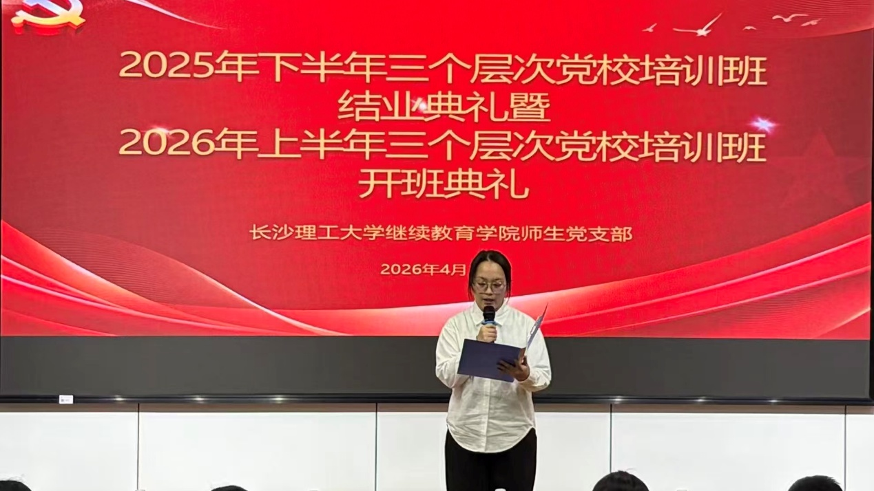 4月16日晚7:00,继续教育学院分党校在12教200会议室举行2025年下半年结业典礼暨2026年上半年开班仪式。院党委副书记、副院长任艮丰,师生党支部书记谭冰,宣传委员曾淑怡,各教学部学工负责人以及全体学员参加了会议。
