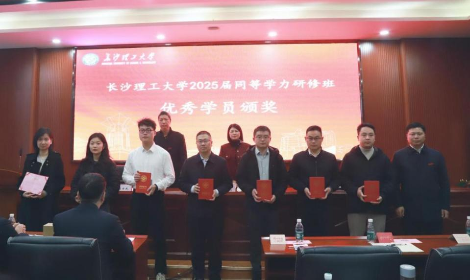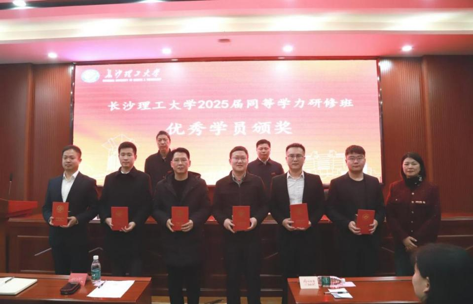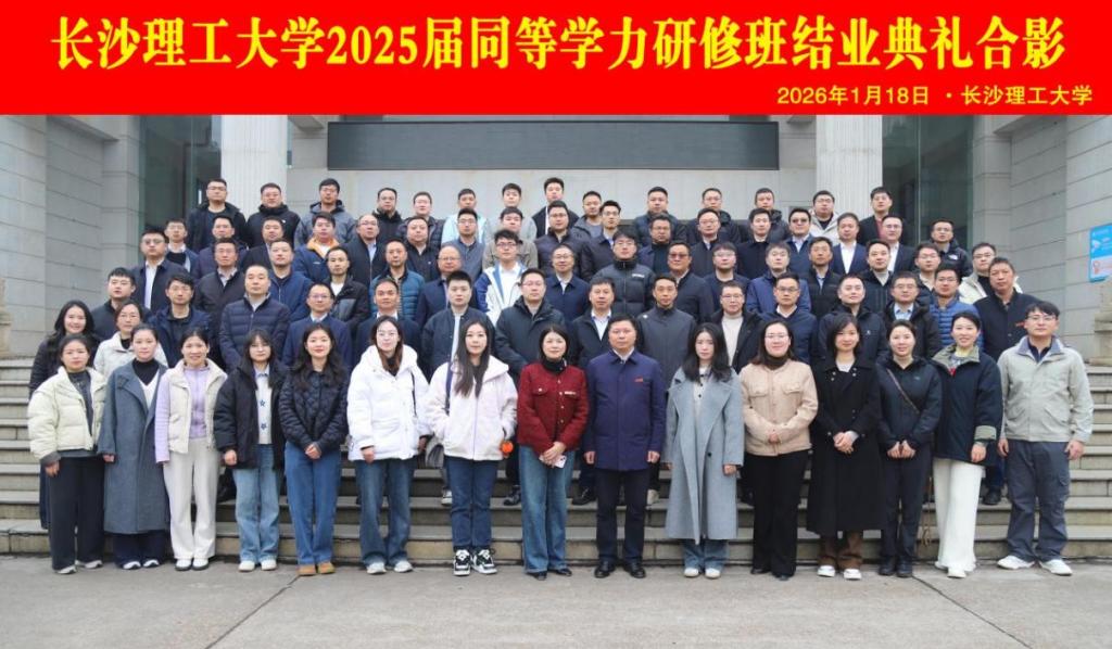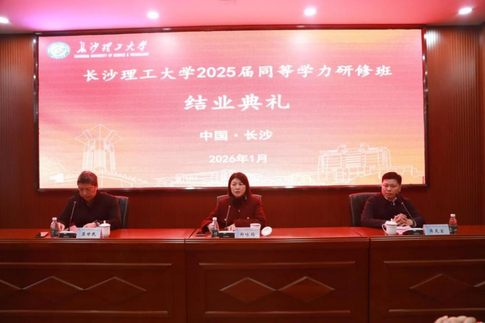 2026年1月18日上午,长沙理工大学2025届同等学力研修班结业典礼在金盆岭校区九教218举行。土木工程、设计学、统计学三个专业共119名学员顺利完成课程学习,即将进入申硕论文阶段。继续教育学院副院长郑咏梅、土木与环境工程学院副院长蒋友宝、继续教育学院培训部主任莫世民出席典礼。典礼由莫世民主持。