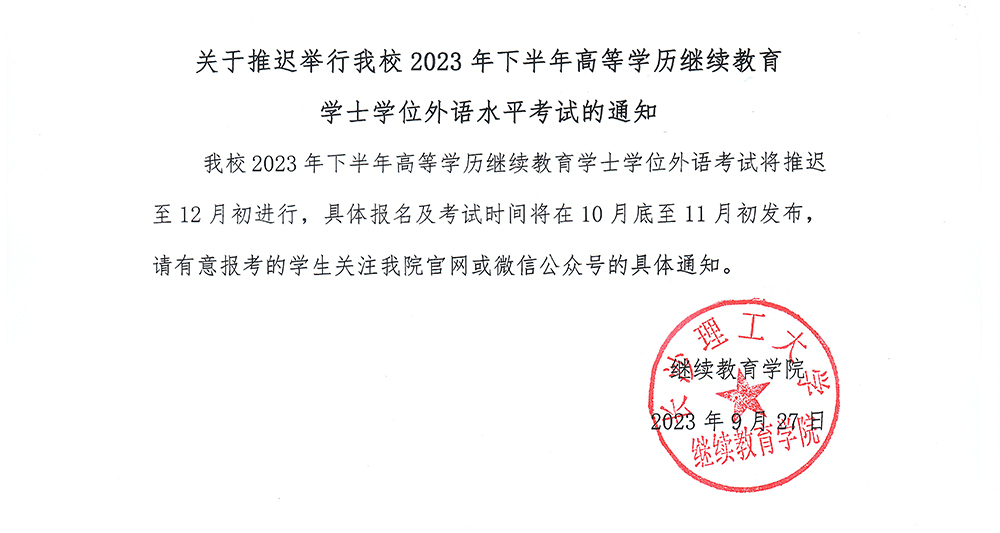关于推迟举行我校2023年下半年学士学位外语水平考试的通知