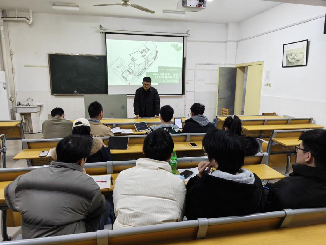 为精准破解城乡规划专业考研学子在公共课与专业课备考中的核心痛点,切实赋能2026届毕业生高效冲刺考研目标,12月4日晚,城乡规划系特邀长沙卓越设计李志豪老师,在16教313教室为2021级城乡规划专业学子开展考研冲刺指导专题讲座。