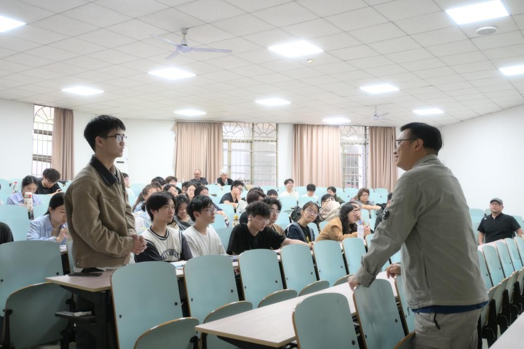 互动交流环节中,王蔚针对同学们提出的“专业创业方向选择”“创业初期资源整合”“学术与创业的平衡”等问题逐一解答,结合自身创业经历给出了指导性建议,鼓励同学们立足专业所长,勇于探索创新,将个人专业成长与行业发展、城市建设相结合,在创新创业中实现个人价值。
