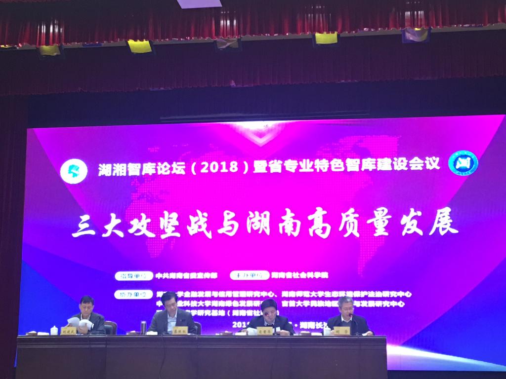 由省委宣传部指导、湖南省社会科学院主办的“湖湘智库论坛(2018)暨省专业特色智库建设会议”于2018年11月20日在湖南宾馆召开,我校社科处处长卿定文教授、马克思主义学院院长陈万球教授、副院长梁建新教授参加了会议。会议对省级首批专业特色智库进行了授牌,全省共有26家智库入选。由付宏渊书记担任首席专家的我校申请的“新时代中国特色社会主义故事传播研究中心”专业特色智库顺利入选,并由省委常委宣传部长蔡振红授牌。会议还表彰了第二届湖南智库研究“十大金策”成果,由陈万球教授撰写的巜学习贯彻习近平新时代中国特色社会主义思想:“天天见”“天天新”“天天深”的湖南探索》获得优秀成果奖。
