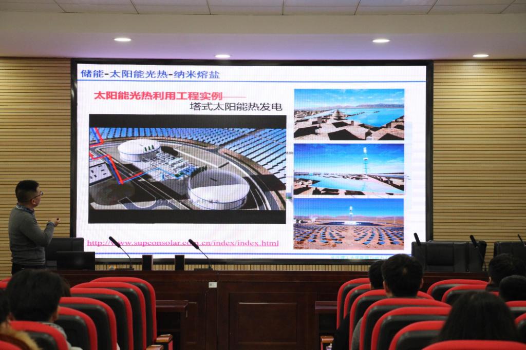 第一部分,由肖俊兵博士带来了题为中高温纳米熔盐在太阳能光热储能中的应用研究”的报告。