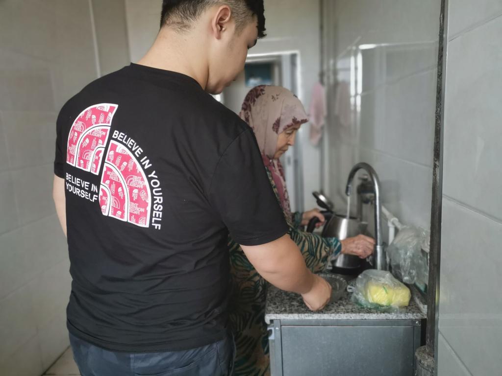志愿团走访看望空巢孤寡老人,把温暖和关爱送到他们家中。志愿者艾则麦提·伊敏江走进了哈密市三道岭镇海日古丽老人家详细询问老人生活情况和身体状况,帮忙老人收拾家务,并一同做午饭吃午饭。他还贴心地给老人买了花,帮老人打造了一个舒适的生活环境。志愿者的到来让老人家们非常感动,海日古丽激动地说道:孩子们在外地工作,都不在身边,日子虽然越过越好,但还是希望有人陪伴,感谢志愿者们的慰问和关心。他们还希望以后志愿者们能有更多时间来陪伴这些子女不在身边的空巢老人。
