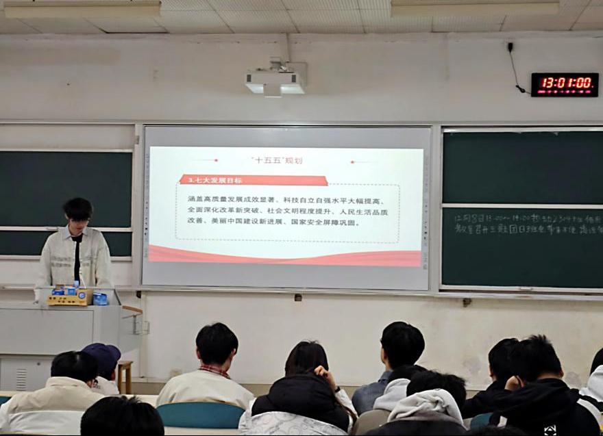各团支部通过主题班会、视频讲解、心得分享、优秀写作作品收集等形式,深入学习了全会关于坚持和完善中国特色社会主义制度、推进国家治理体系和治理能力现代化的一系列重大理论和实践问题的深刻阐释,在学思践悟中进一步坚定理想信念。何邵凯同学在分享时说到“全会强调高质量发展,对我们能动专业而言,意味着要更加致力于清洁能源、节能减排等关键技术的创新突破,为实现双碳目标贡献智慧。”